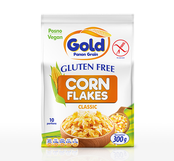Korn fleks je izrazito zdrav i hranljiv proizvod čiji je glavni sastojak kukuruz. Bogat je skrobom, proteinima i mineralima. Omiljena i hrskava zdrava hrana koja je ujedno i prirodni izvor energije za svakodnevne aktivnosti. Pogodan je za posebne režime ishrane te se može uključivati u ishranu vegetarijanaca i vegana. Kukuruz je bez glutena, čuva srce, pomaže u očuvanju vitke linije, moćan je antioksidans, kao dobar laksativ poboljšava rad creva. Gold Panon Grain Corn Flakes je bez glutena, te je pogodan za osobe obolele od celijakije, ili intolerantne na gluten.